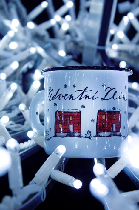 Také letos si můžete udělat radost originálním zlínským vánočním plecháčkem. Krásné bílé plechové hrnečky s motivem malovaných baťovských domků v zimní krajině potěší každého. Autorkou malby je Jana Svobodová z Ateliéru Radost. Smaltované plecháčky jsou s celoplošným potiskem, takže si ho užijí jak praváci, tak i leváci.