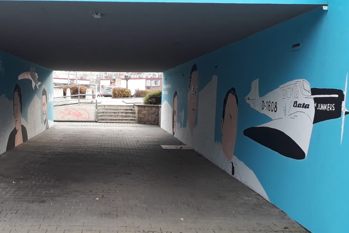 Streetartové dílo vzniká v rámci prvního ročníku Streetartového sympozia, jehož cílem je nabídnout krásná a inspirativní místa a zároveň navrátit baťovské myšlenky do veřejného prostoru skrze umělecké ztvárnění. Jako vhodný prostor byl vybrán právě podchod vedoucí k vile Tomáše Bati. Autorem vítězného návrhu je Dalibor Vybíral, vysokoškolsky vystudovaný výtvarník a grafický designer s mnohaletou praxí, z grafického studia Graffone team. V současné době pracuje každý den na realizaci díla. Máte proto jedinečnou příležitost se na něj přijít podívat.