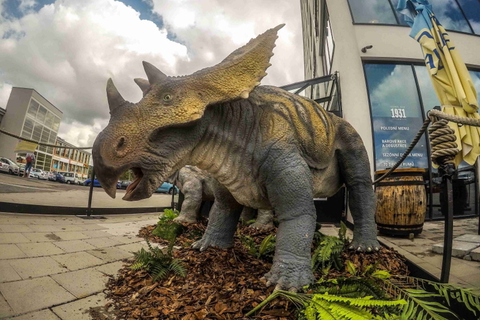 Výstavu doprovází také velké exponáty dinosaurů zapůjčené z tuzemských dinoparků, u nichž se může kdokoli vyfotit na památku.