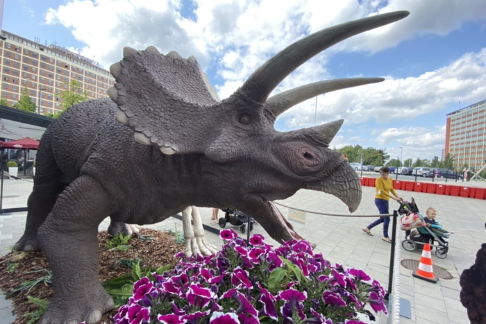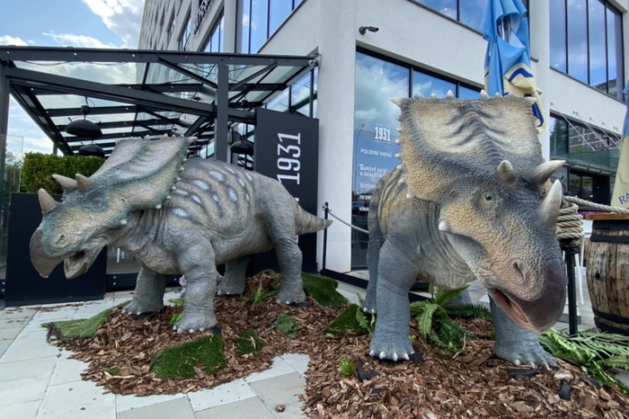Velkým lákadlem pro děti jsou velké exponáty dinosaurů zapůjčené z tuzemských DinoParků, které jsou umístěné před Obchodním domem a v obchodní pasáži. Pokud se vyfotíte u jednoho z nich, můžete vyhrát vstupenky na výstavu a do DinoParku. Zdejší kornuterie navíc pro malé návštěvníky připravila speciální dinosauří zmrzlinu, Bistrotéka Valachy dinosauří specialitu a knihkupectví Beta Dobrovský nabízí slevu na všechny dostupné knižní tituly ilustrované Burianem.