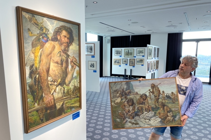 Výstava „Zdeněk Burian: Za dinosaury a dobrodružstvím" probíhá v Galerii Desítka na střeše Obchodního domu až do 15. září. Představuje přes dvě stě děl legendárního malíře, od jehož úmrtí v červenci uplynulo 40 let. Skutečnou raritou jsou čtyři obří plátna s výjevy z pravěku, která jsou veřejnosti téměř neznámá a pro výstavu je mimořádně zapůjčily pražské Národní muzeum a Slovenské národní muzeum. „Získat tato plátna a další tři obrazy ze Slovenska přitom bylo velmi náročné, zapůjčení musel schválit ministr kultury," dodal Pavel Chmelík. V galerii také můžete zhlédnout filmové dokumenty o Zdeňku Burianovi, vychutnat si kávu s výhledem na Zlín a na památku zakoupit plakáty a pohlednice s Burianovými ilustracemi a dokonce i zkameněliny. Je zde také na prodej několik originálů.