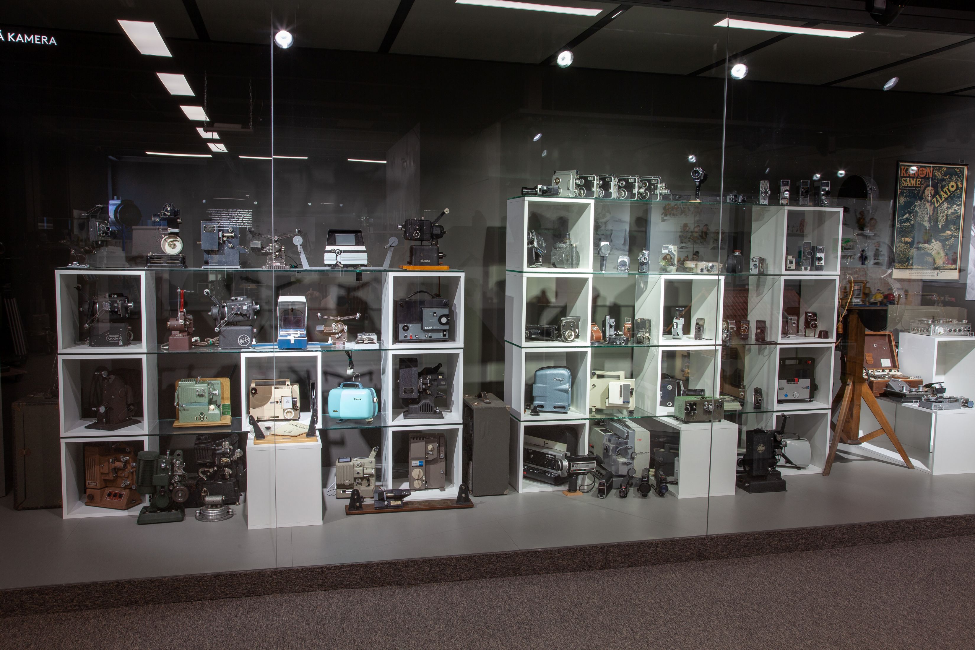 Vystavena je také řada původních loutek z různých materiálů, včetně populárních postaviček z animovaných filmů od Ferdy Mravence až po Pata a Mata. Zajímavostí je i dobová filmová technika, například kamera držitele filmového Oscara Alexandra Hackenschmieda, nebo technika, se kterou Hanzelka a Zikmund zachycovali své slavné expedice. Expozici doplňuje ucelená kolekce amatérské filmové techniky od soukromého sběratele Radomíra Koutka.