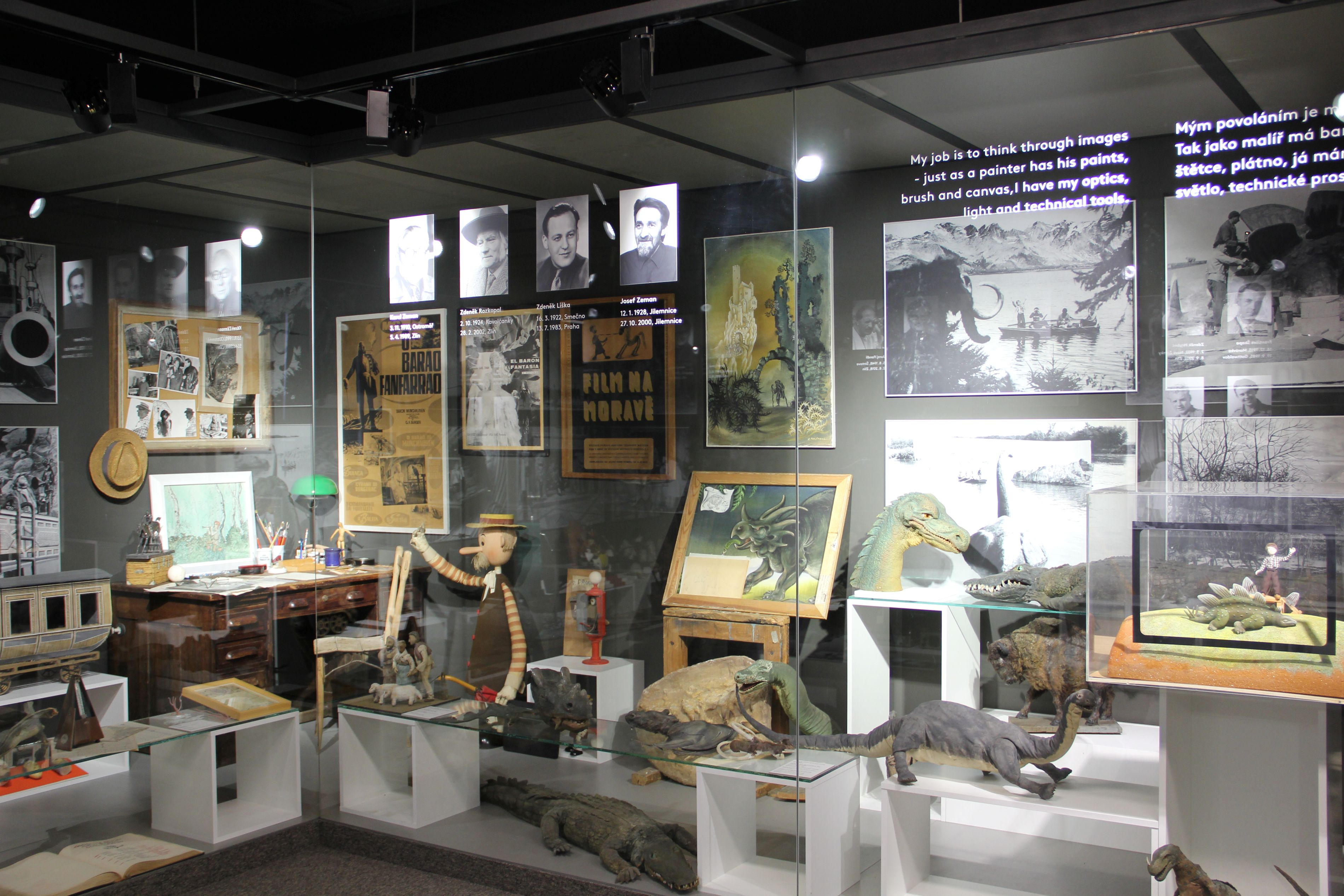 V expozici uvidíte celou řadu originálních artefaktů, které hrály významnou roli v tvorbě i v životě zlínských filmařů, a to nejen Hermíny Týrlové a Karla Zemana, ale i mnoha dalších tvůrců. Nahlédnete do celých scén z animovaných filmů, uvidíte originální dekorace, rekvizity, výtvarné návrhy, fotografie, pracovní pomůcky i osobní předměty autorů, kteří se nesmazatelně zapsali do dějin české kinematografie.